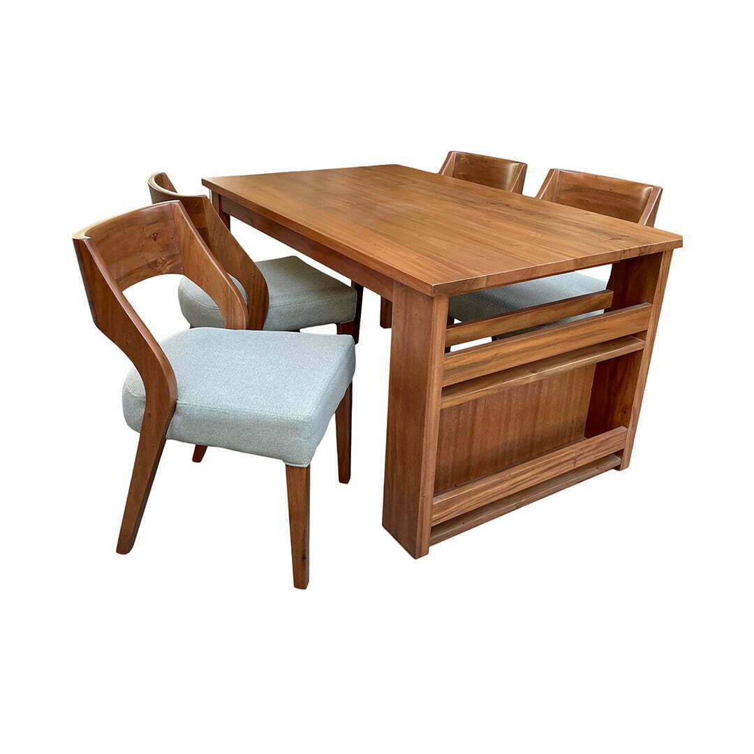 This ensemble encourages closeness. Each chair is extra comfortable with Uratex foam underneath the upholstered fabric or leather for those family breakfasts, lunches, and dinners. The table is made with mahogany solid wood and framed with utmost precision in size and strength for simple and grander meals with enough room for anyone to join in.